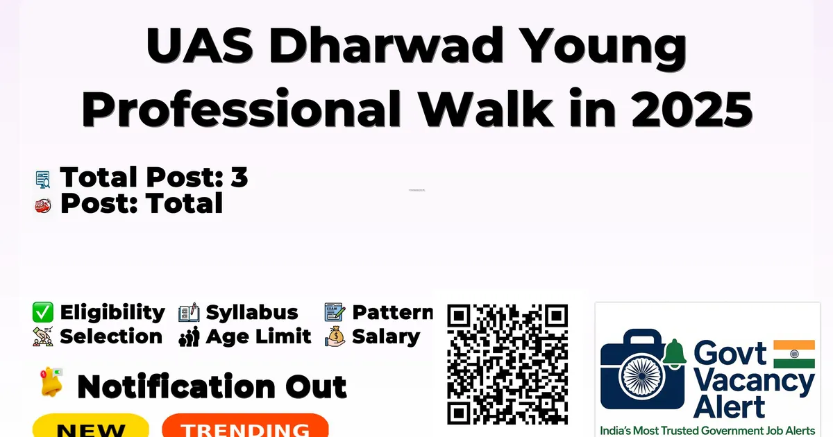 University of Agricultural Sciences Dharwad (UAS Dharwad) Recruitment 2025 for 3 posts of Young Professional. Candidates with M.Sc Can attend the walkin. The Walk-in on 04-11-2025. For detailed information please visit UAS Dharwad official website, uasd.edu.