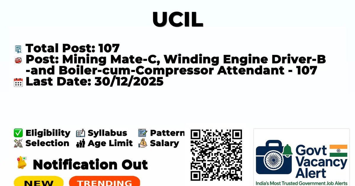 Mining Mate-C, Winding Engine Driver-B, Boiler-cum-Compressor Attendant-A |