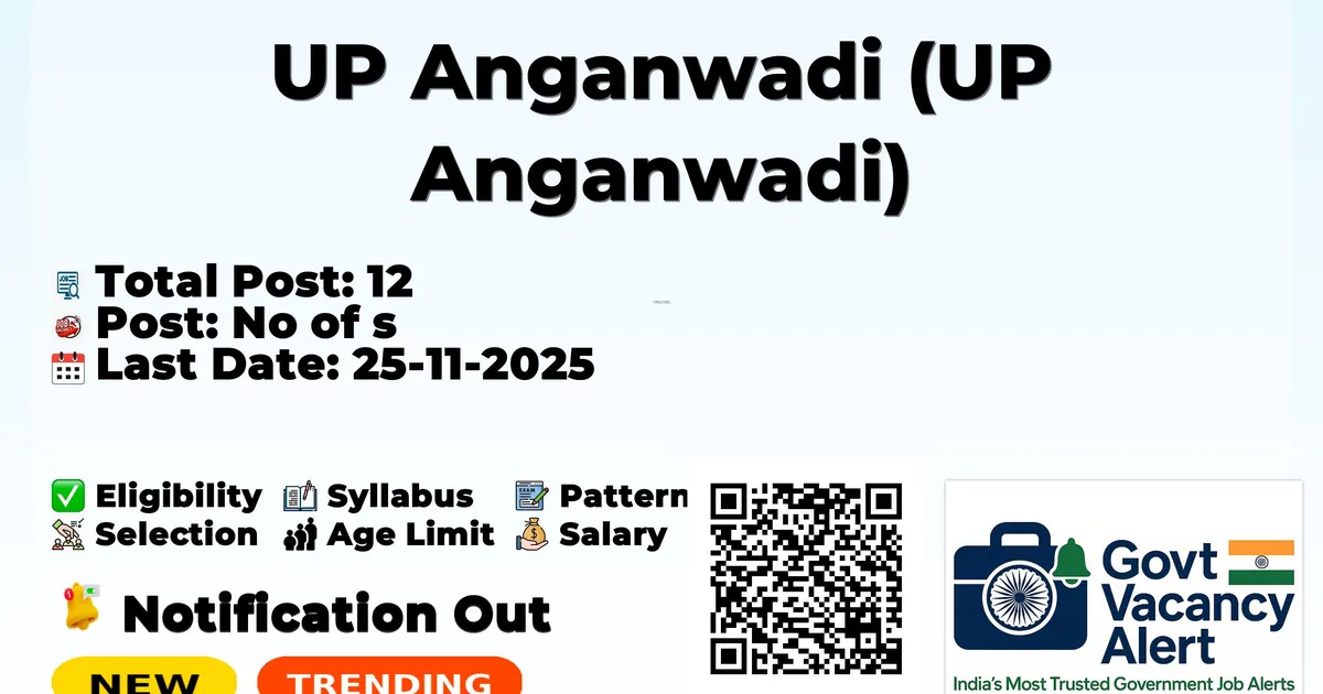 Company Name UP Anganwadi (UP Anganwadi) Post Name Anganwadi Workers No of Posts 12 Qualification 12TH Age Limit 18 to 35 years Last Date for Apply Online 25-11-2025 Official Website upanganwadibharti.in