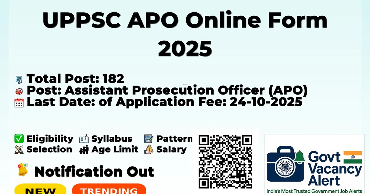 The Uttar Pradesh Public Service Commission (UPPSC) Recruitment 2025 for 182 posts of Assistant Prosecution Officer. Candidates with LLB Can Apply Online. The online application opens on 16-09-2025, and closes on 16-10-2025. The candidate shall apply online through UPPSC website, uppsc.up.nic.in.