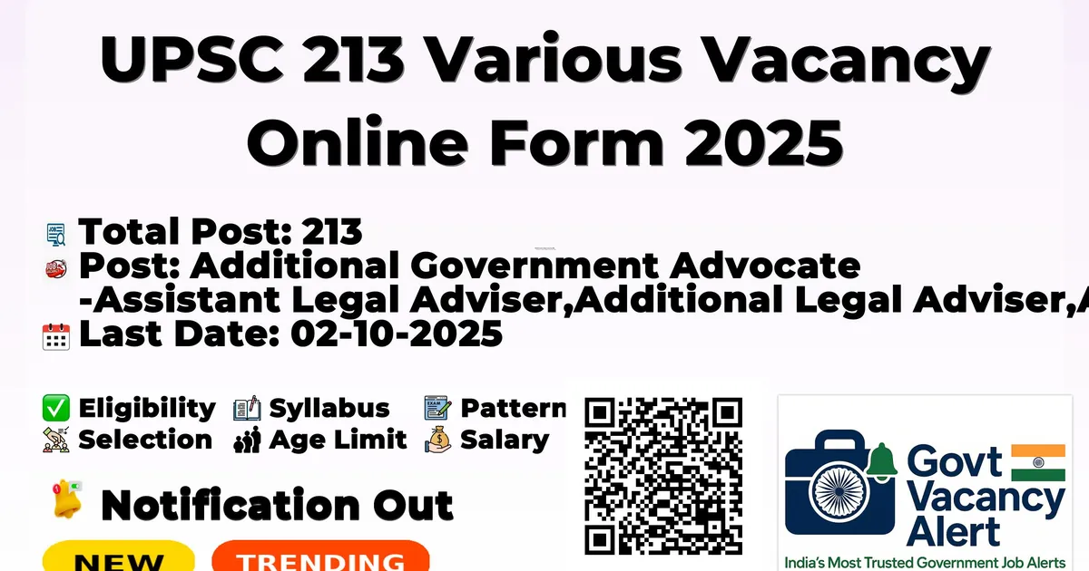 UPSC 213 Various Vacancy Online Form 2025 — Additional Government Advocate,Assistant Legal Adviser,Additional Legal Adviser,Assistant Government Advocate,Deputy Government Advocate,Deputy Legal Adviser,Lecturer (Urdu),Medical Officer,Accounts Officer,Assistant Director