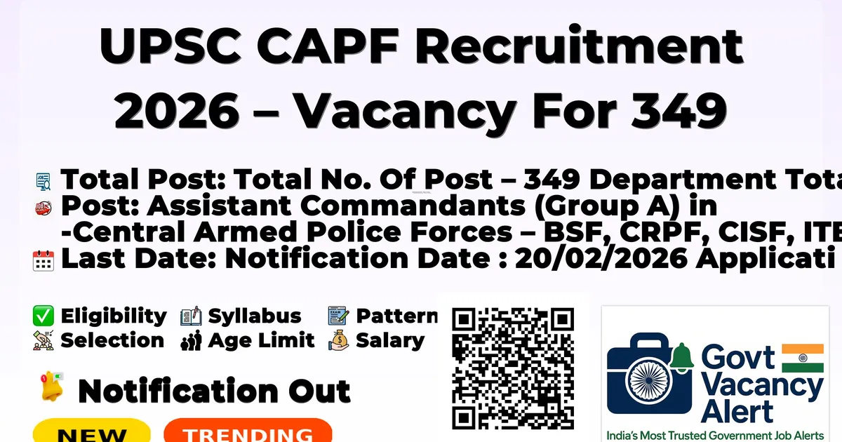 UPSC CAPF Recruitment 2026 – Vacancy For 349 Posts