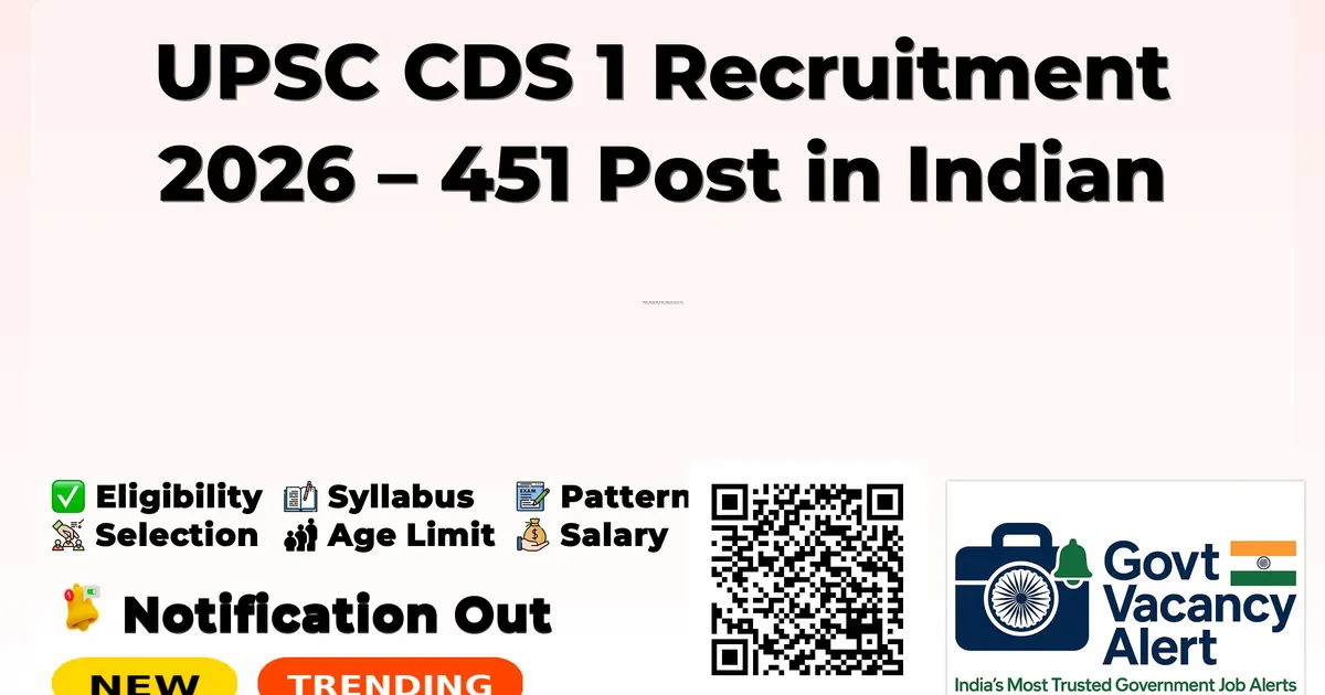 Dear friends, Union Public Service Commission (UPSC) has released UPSC CDS 1 Recruitment 2026. All the candidates who like government job can see the PDF of UPSC CDS 1 Notification 2026. Eligible and interested candidates can apply for this job before the last date. Candidates read this article till the end to get the dates, qualifications, age limit, fees, application and other information of UPSC CDS 1 Recruitment Online Form 2026.