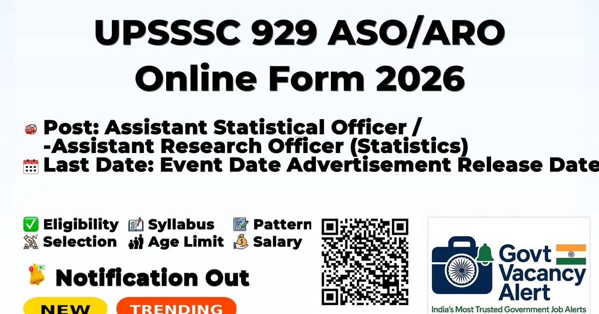 Uttar Pradesh Subordinate Services Selection Commission (UPSSSC), Lucknow has released the Advertisement No. 05-Exam/2026 for the post of Sahayak Sankhyikiya Adhikari / Sahayak Shodh Adhikari (Sankhyiki) [Assistant Statistical Officer / Assistant Research Officer (Statistics)] Main Examination (PRA0A0P0-2025)/06 for selection to a total of 929 vacant posts under various departments of Uttar Pradesh Government under the Apprentices Act through direct recruitment. FreeJobAlert - Your Personal Govt Job Finder 10M+Users 100+Jobs/day FreeAlways ⚡ Get Custom Govt Job Alerts - Alerts by Qualification, State and Interest. Set Free Alerts ● Free · No spam · Unsubscribe anytime · freejobalert.com Candidates must have qualified in the Preliminary Eligibility Test-2025 (PET-2025) and must hold a Post-Graduate degree or equivalent qualification in Mathematics / Mathematical Statistics / Commerce / Economics / Statistics from a legally established university in India, along with a computer diploma and knowledge of Hindi in Devanagari script. Shortlisting for the Main Examination will be done based on PET-2025 normalized scores. All these latest government jobs in UPSSSC are permanent state government positions with attractive pay scale of Level-6 (₹35,400 – ₹1,12,400 per month) for most posts, making this one of the most sought-after government job opportunities for Statistics/Mathematics postgraduates in Uttar Pradesh. Advertisement Uttar Pradesh Subordinate Services Selection Commission (UPSSSC), Lucknow has invited online applications for the post of Assistant Statistical Officer / Assistant Research Officer (Statistics) for FY 2026 under Advertisement No. 05-परीक्षा/2026 dated 20-03-2026. Particulars Details Organization Uttar Pradesh Subordinate Services Selection Commission (UPSSSC) Advertisement No. 05-परीक्षा/2026 dated 20-03-2026 Post Name Assistant Statistical Officer / Assistant Research Officer (Statistics) Category Direct Recruitment – Permanent Government Job Total Posts 929 posts Pay Scale Level-6: ₹35,400 – ₹1,12,400/month (most posts); some posts at Level-6: ₹9,300 – ₹34,800 Job Location Various Government Departments across Uttar Pradesh Application Mode Online only via upsssc.gov.in Selection Process PET-2025 Score → Main Written Exam (100 Qs, 2 hrs) → Document Verification UPSSSC has published the official notification vide Advertisement No. 05-परीक्षा/2026 dated 20-03-2026. The detailed notification and online application link are available on the official website upsssc.gov.in under the Live Advertisement Segment on the Homepage. Download Notification PDF Apply Online The UPSSSC ASO/ARO Recruitment 2026 announces a total of 929 posts with reservation: 344 General (UR), 211 SC, 12 ST, 300 OBC, 62 EWS. Posts are spread across 19 departments of Uttar Pradesh Government. Department Post Name Total Posts Arth Evam Sankhya Vibhag, UP Sahayak Sankhyikiya Adhikari (Assistant Statistical Officer) 267 Arth Evam Sankhya Vibhag, UP Sahayak Sankhyikiya Adhikari (Special Recruitment) 234 Rajya Kar Aayukt Karyalay Sahayak Sankhyikiya Adhikari (Assistant Statistical Officer) 75 Karyalay Pradhan Mukhya Van Sanrakshak Evam Vibhagadhyaksha, UP Sahayak Sankhyikiya Adhikari (Assistant Statistical Officer) 54 Karyalay Pradhan Mukhya Van Sanrakshak (Special Recruitment) Sahayak Sankhyikiya Adhikari (Assistant Statistical Officer) 14 Prashikshan Evam Sewayojan Nideshalaya, UP Sahayak Sankhyikiya Adhikari (Assistant Statistical Officer) 40 Rajya Niyojan Sansthan (Naveen Prabhaag), UP Sahayak Sankhyikiya Adhikari (Assistant Statistical Officer) 36 Rajya Niyojan Sansthan (Special Recruitment) Sahayak Sankhyikiya Adhikari (Assistant Statistical Officer) 04 Karyalay Aayukt Evam Nibandhak Sahkarita, UP, Lucknow Sahayak Sankhyikiya Adhikari (Assistant Statistical Officer) 12 Karyalay Aayukt Evam Nibandhak Sahkarita (Special Recruitment) Sahayak Sankhyikiya Adhikari (Assistant Statistical Officer) 05 Anusuchit Jati Evam Anusuchit Janjaati, Shodh Evam Prashikshan Sansthan, UP Sahayak Sankhyikiya Adhikari (Assistant Statistical Officer) 10 Pashupalan Nideshalaya Sahayak Sankhyikiya Adhikari (Assistant Statistical Officer) 60 Pashupalan Nideshalaya (Special Recruitment) Sahayak Sankhyikiya Adhikari (Assistant Statistical Officer) 12 Ganna Adhishthan Evam Cheeni Adhishthan Sahayak Sankhyikiya Adhikari (Assistant Statistical Officer) 38 Chikitsa Evam Swasthya Seva Nideshalaya, UP Sahayak Sankhyikiya Adhikari (Assistant Statistical Officer) 44 Sinchai Evam Jal Sansadhan Nideshalaya Sahayak Sankhyikiya Adhikari (Assistant Statistical Officer) 10 Sinchai Evam Jal Sansadhan Nideshalaya (Special Recruitment) Sahayak Sankhyikiya Adhikari (Assistant Statistical Officer) 01 Vittiya Yojana Aur Sansadhan Nideshalaya Sahayak Shodh Adhikari (Sankhyiki) Assistant Research Officer 12 Vittiya Yojana Aur Sansadhan Nideshalaya (Special Recruitment) Sahayak Shodh Adhikari (Sankhyiki) Assistant Research Officer 01 Grand Total 929 Event Date Advertisement Release Date 20 March 2026 Online Application Start Date 21 April 2026 Last Date to Submit Online Application & Fee 11 May 2026 (till midnight) Last Date for Fee Reconciliation & Application Amendment 18 May 2026 Main Written Examination Date To be notified Eligibility criteria include PET qualification, age limit, educational qualification and other conditions. All conditions must be fulfilled as on the last date of application. Particulars Details Minimum Age 21 years (as on 1st July of the advertisement year) Maximum Age 40 years Age Relaxation – SC/ST/OBC (UP domicile) As per UP Government rules Age Relaxation – State Government Employees 5 years additional relaxation Age Relaxation – Ex-Servicemen As per UP Reservation Act 1993 Age Relaxation – CM Fellowship Research Scholars As per UP notification dated 30 January 2026 Note: Candidates who are not domiciled in Uttar Pradesh will NOT be eligible for 