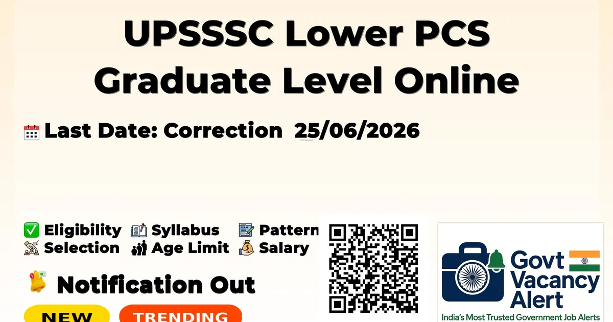 UPSSSC Lower PCS Recruitment 2026: Uttar Pradesh Subordinate Service Selection Commission (UPSSSC) are invited to apply online application form for UPSSSC Lower PCS (Graduate Level) Recruitment 2026. Other information related to this recruitment like selection procedure, pay scale, age limit, syllabus information is available in the notification (UPSSSC Lower PCS Graduate Level Online Form 2026).