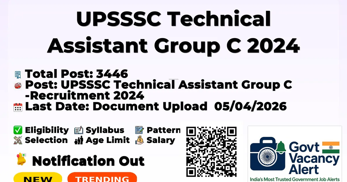 Vacancy Details Total Post : 3446Post Name: UPSSSC Technical Assistant Group C Recruitment 2024 |