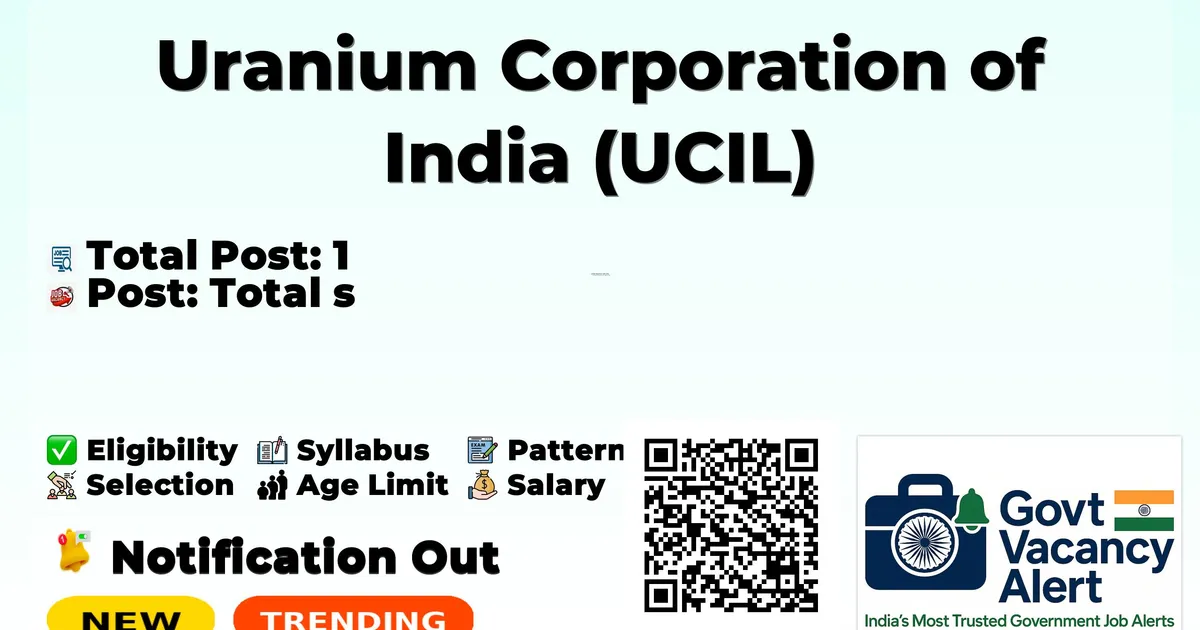 The Uranium Corporation of India Limited (UCIL) Medical Officer Notification 2026 has been released on the official website ucil.gov.in . A total of 1 vacancy has been announced through the UCIL Medical Officer Recruitment 2026. FreeJobAlert - Your Personal Govt Job Finder 10M+Users 100+Jobs/day FreeAlways ⚡ Get Custom Govt Job Alerts - Alerts by Qualification, State and Interest. Set Free Alerts ● Free · No spam · Unsubscribe anytime · freejobalert.com Candidates below 65 years of age who have MBBS qualification with minimum 2 years experience are eligible to apply for these Medical Officer vacancies. The application process for UCIL Medical Officer Recruitment 2026 is Walk-in based, and the walk-in interview will be conducted on 20 April 2026. Candidates can download the official notification PDF and attend the walk-in interview through the direct details provided in this article. Advertisement Company Name Uranium Corporation of India (UCIL) Post Name Medical Officer No of Posts 1 Advt No UCIL-07/2026 Salary Rs.80,500/- to Rs.1,20,600/- per month Qualification MBBS Age Limit Below 65 years Walk-in Date 20 April 2026 Apply Mode Walk-in Job Type Contract Candidates should download and read the UCIL Jobs 2026 notification PDF carefully to check vacancy details, eligibility, age limit, and application instructions. The notification also includes important dates and selection process details. The direct download link is available in the Important Links section below. Download UCIL Medical Officer Job 2026 Notification PDF Post Name Total Posts Medical Officer 1 Total 1 MBBS recognized by Indian Medical Council with minimum two years relevant experience in a reputed hospital. PG degree in the relevant field will be an added advantage. Preference shall be given to candidates with AFIH qualification. Category Fee No application fee is mentioned in the official notification. Maximum Age Limit: 65 years (including relaxation) Consolidated monthly remuneration ranges from Rs.80,500/- to Rs.1,20,600/- per month based on experience. For 02 years & above but less than 05 years of experience: Rs.80,500/- per month For 05 years & above but less than 09 years of experience: Rs.1,00,600/- per month For 09 years & above of experience: Rs.1,20,600/- per month Event Date Walk-in Interview 20 April 2026 Walk-in Interview Candidates who wish to attend the walk-in interview for UCIL Medical Officer Recruitment 2026 should follow the steps below. Read the official notification carefully before attending the interview. Candidates must report at the venue as per the reporting time mentioned in the notification. Carry all original documents along with one set of self-attested photocopies such as ID proof, educational certificates, experience certificates (if required), and category certificate (if applicable). Bring the duly filled application form if required in the notification. Verify eligibility criteria before attending the interview. Candidates are advised to reach the venue well in advance to complete registration formalities. Keep extra passport-size photographs for submission if required. Link Description Link Official Notification PDF Click here Official Website Click here FreeJobAlert - Your Personal Govt Job Finder 10M+Users 100+Jobs/day FreeAlways ⚡ Get Custom Govt Job Alerts - Alerts by Qualification, State and Interest. Set Free Alerts ● Free · No spam · Unsubscribe anytime · freejobalert.com