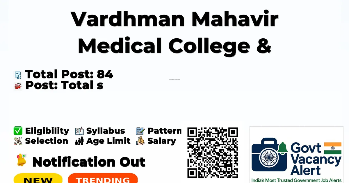 Vardhman Mahavir Medical College & Safdarjung Hospital (VMMC & SJH) has released an official notification for Walk-in Interview for 84 Senior Resident Posts. Eligible candidates can attend the Walk-in Interview on at the VMMC & SJH office with original documents and self-attested copies.