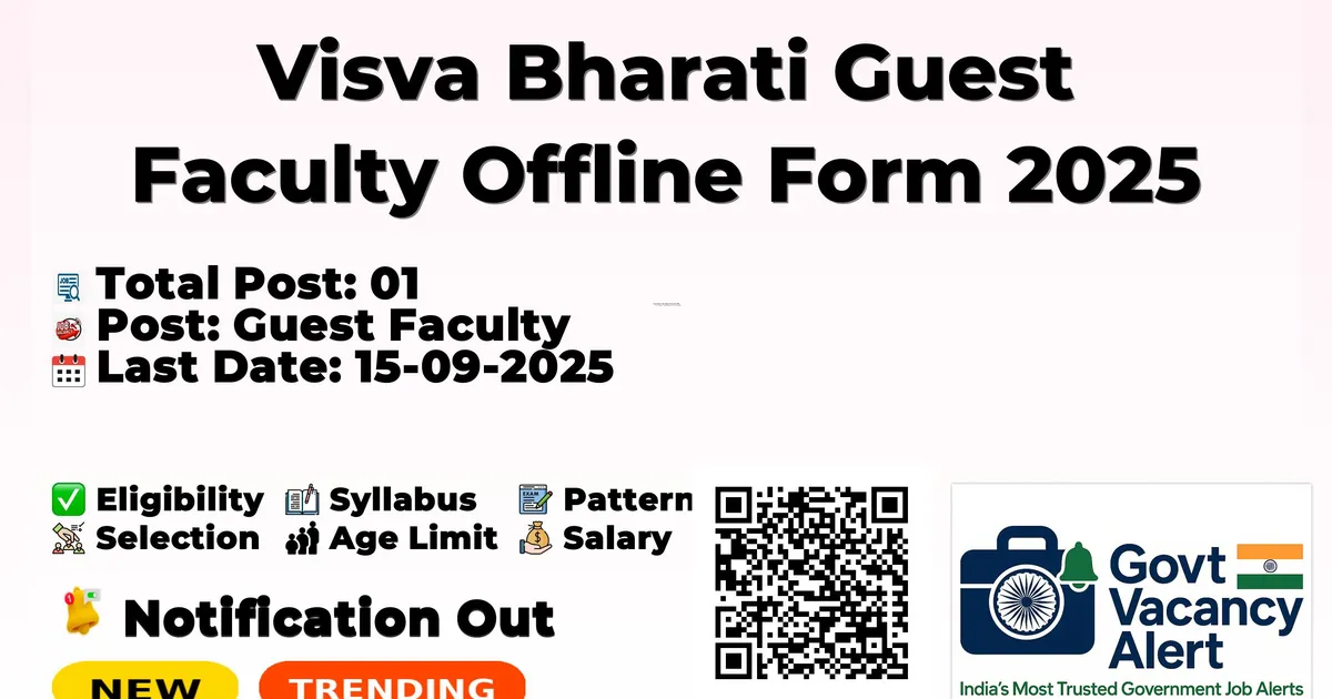 The Visva Bharati Recruitment 2025 for 01 posts of Guest Faculty. Candidates with M.A Can Apply Offline. The Offline application opens on 04-09-2025, and closes on 15-09-2025. The candidate shall apply Offline through Visva Bharati website, visvabharati.ac.in.