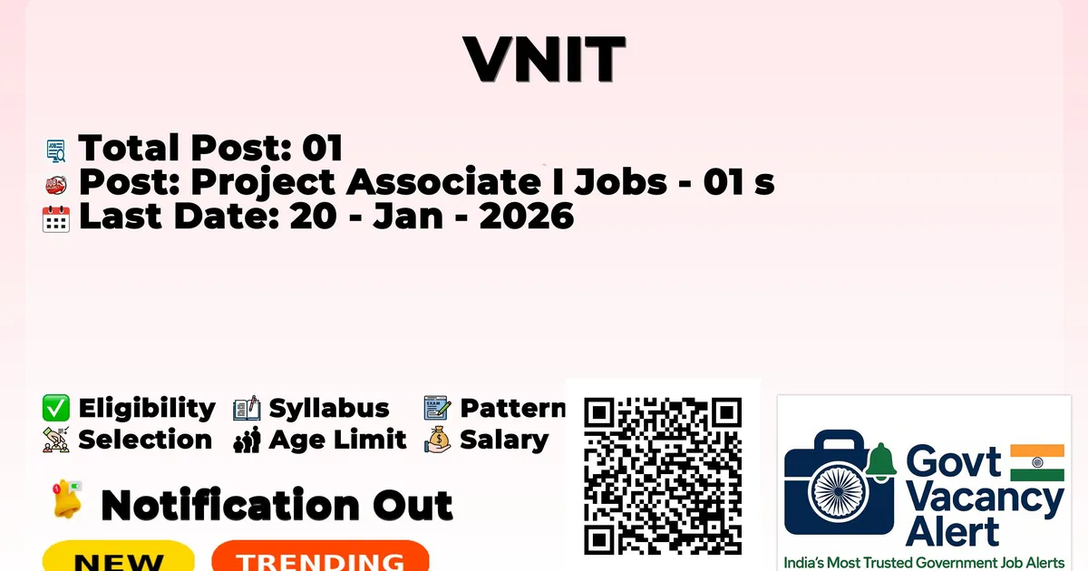 Visvesvaraya National Institute of Technology (VNIT Nagpur) has announced the official notification for 2026. To fill up the various vacancies for Project Associate I Jobs. Those candidates who have qualified in the B.E/ B.Tech., M.E/ M.Tech in Mechanical Engineering can grab this chance and apply for these posts. Interested and eligible candidates can apply before the last date of application. Here, we included the age limit, selection process, salary structure, education details, application fee, and how to apply for the VNIT Nagpur Recruitment 2026.