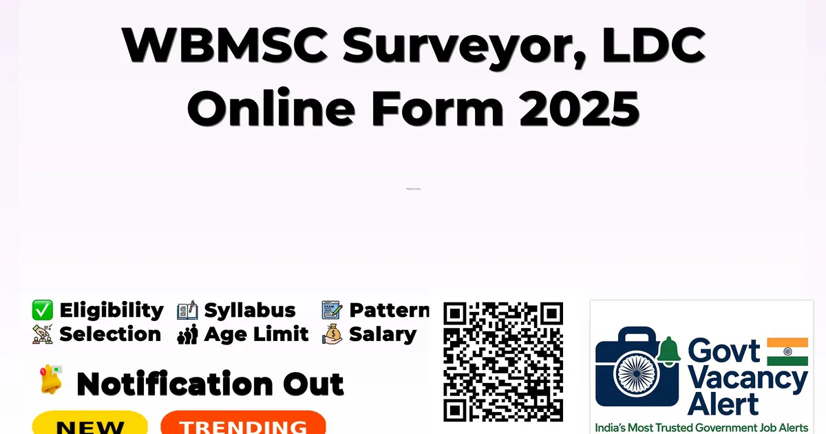 West Bengal Municipal Service Commission (WBMSC) has released an official notification for the recruitment of 03 Surveyor, LDC Posts. Interested and eligible candidates can apply Online through the official WBMSC website. The last date to submit the application form is 17-11-2025. In this article, you’ll find the WBMSC Surveyor, LDC Posts recruitment details, including eligibility criteria, age limit, salary structure, selection process, application steps, and direct links to the official notification and Online application form. Join Our Arattai Channel: Join Here 1. What is the starting date to apply online for WBMSC Surveyor, LDC 2025? Ans: Starting Date to apply online is 17-10-2025. 2. What is the last online apply date for WBMSC Surveyor, LDC 2025? Ans: Last online apply date is 17-11-2025. 3. What is the Eligibility to apply for WBMSC Surveyor, LDC 2025? Ans: Diploma, 12TH, 10TH 4. What is the Maximum Age Limit to apply for WBMSC Surveyor, LDC 2025? Ans: Not more than 40 Years 5. How many vacancies are being recruited by WBMSC Surveyor, LDC 2025? Ans: Total 03 Vacancies. Company Name Post Name No of Posts Pay Matrix Qualification Age Limit Start Date for Apply Online Last Date for Apply Online Official Website Post Name Vacancy