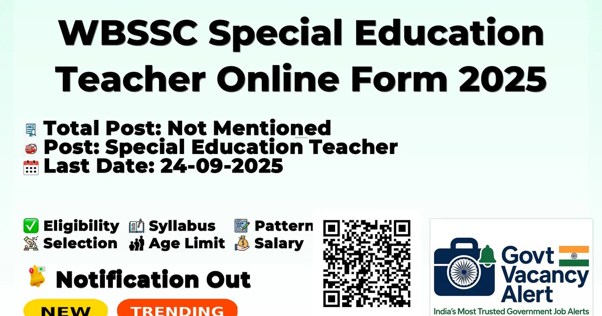 The WBSSC Special Education Teacher Recruitment 2025 Notification PDF has been released on 09-09-2025 at westbengalssc.com. Check the complete job details, vacancy, age limit, application fee, selection process and how to apply from the article. You can Check all Latest Sarkari Result Updates of All Central Government Jobs and State Government Jobs.