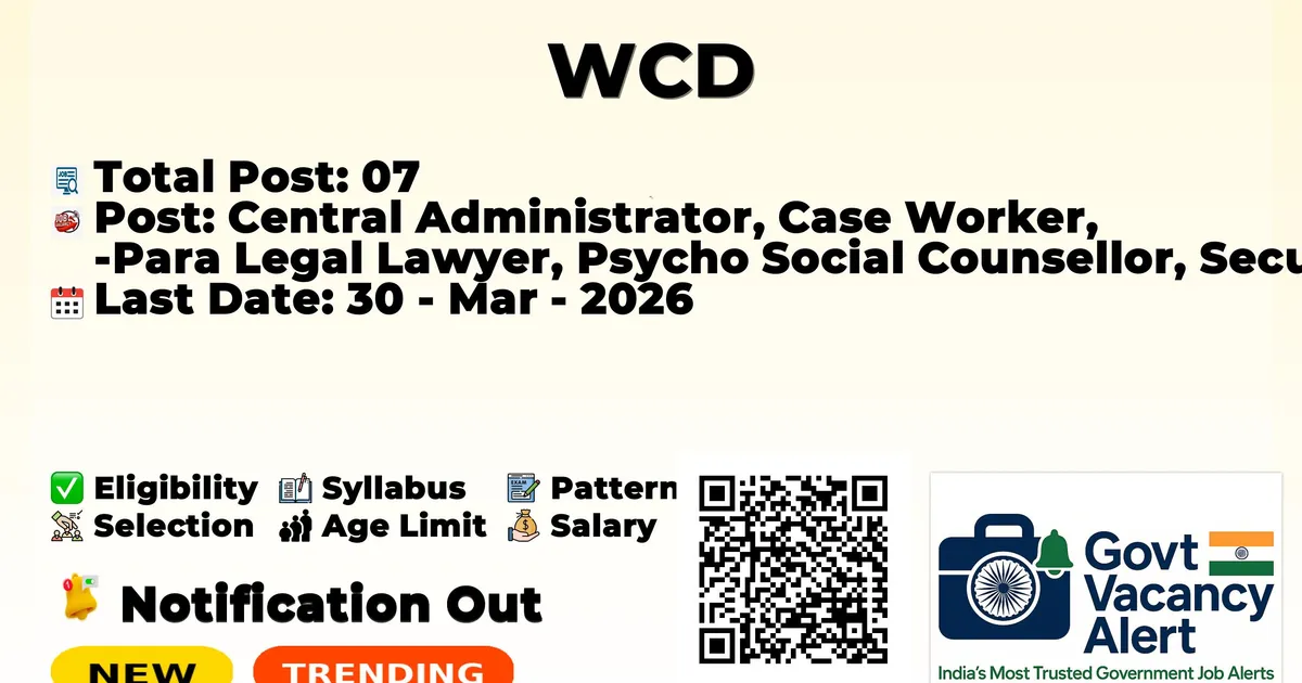 The District Women and Child Welfare and Empowerment Officer, West Godavari (DWCWEO West Godavari) has officially released the notification to fill the vacancies of 07 Central Administrator, Case Worker, Para Legal Lawyer, Psycho Social Counsellor, Security Guard, and Office Assistant Jobs. Interested and eligibile candidates can use this opportunity to apply for these posts before the last date of application. Candidates who have completed their Any Degree, Diploma, and LLB can apply for the DWCWEO West Godavari Jobs 2026. The interested applicants can apply in offline mode. Here we have mentioned the education details, age limit, selection process, application fee, salary, and how to apply for these posts before the deadline. The application dates have already begun.