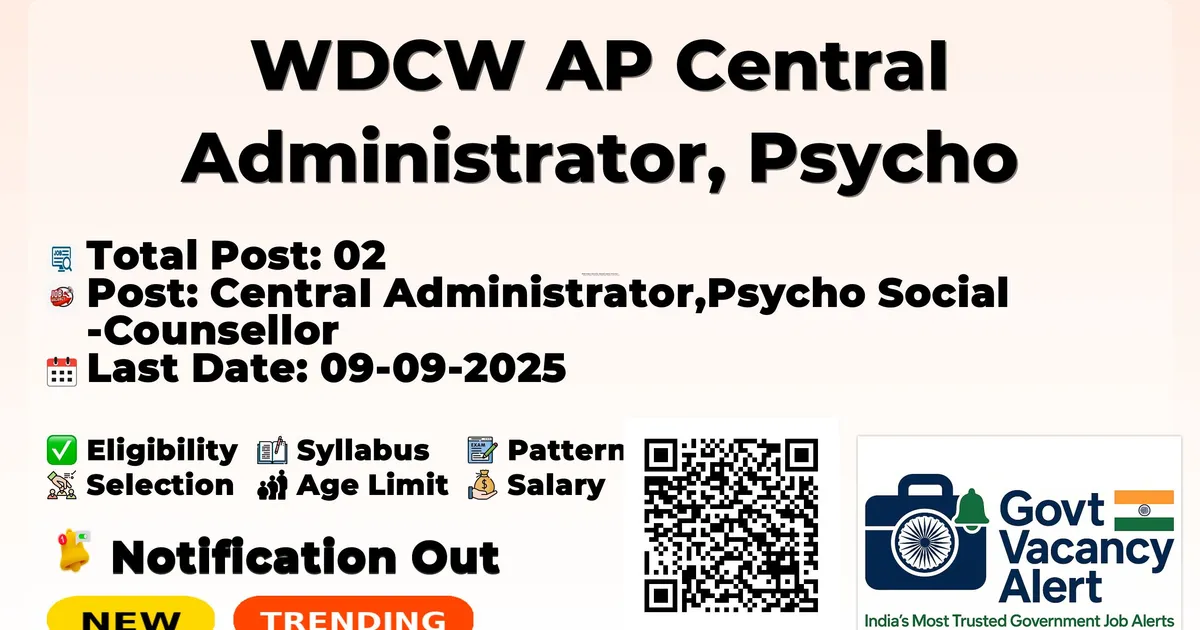 The WDCW AP CentraI Administrator, Psycho Social Counsellor Recruitment 2025 Notification PDF has been released on 01-09-2025 at ntr.ap.gov.in. Check the complete job details, vacancy, age limit, application fee, selection process and how to apply from the article. You can Check all Latest Sarkari Result Updates of All Central Government Jobs and State Government Jobs.