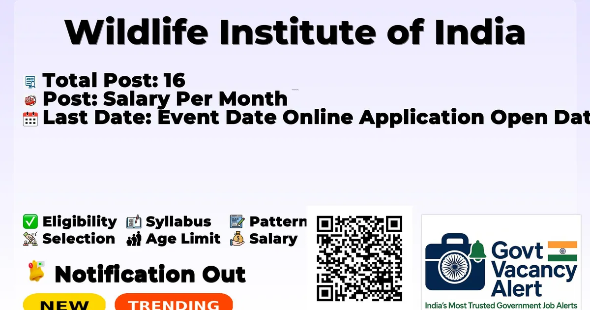 Company Name Wildlife Institute of India Post Name Project Scientist - II / Project Associate - I / Senior Project Associate / Principal Project Associate / Project Assistant No of Posts 16 Advt No WII/ADVT. 2/RP–CELL/ February, 2026 Salary Rs. 27,000 + HRA - Rs. 92,000 + HRA Per Month Qualification Doctoral/Master's/Bachelor's Degrees in relevant fields Age Limit 35-40 years depending on position Last Date 10-03-2026 Apply Mode Online Job Type Contract