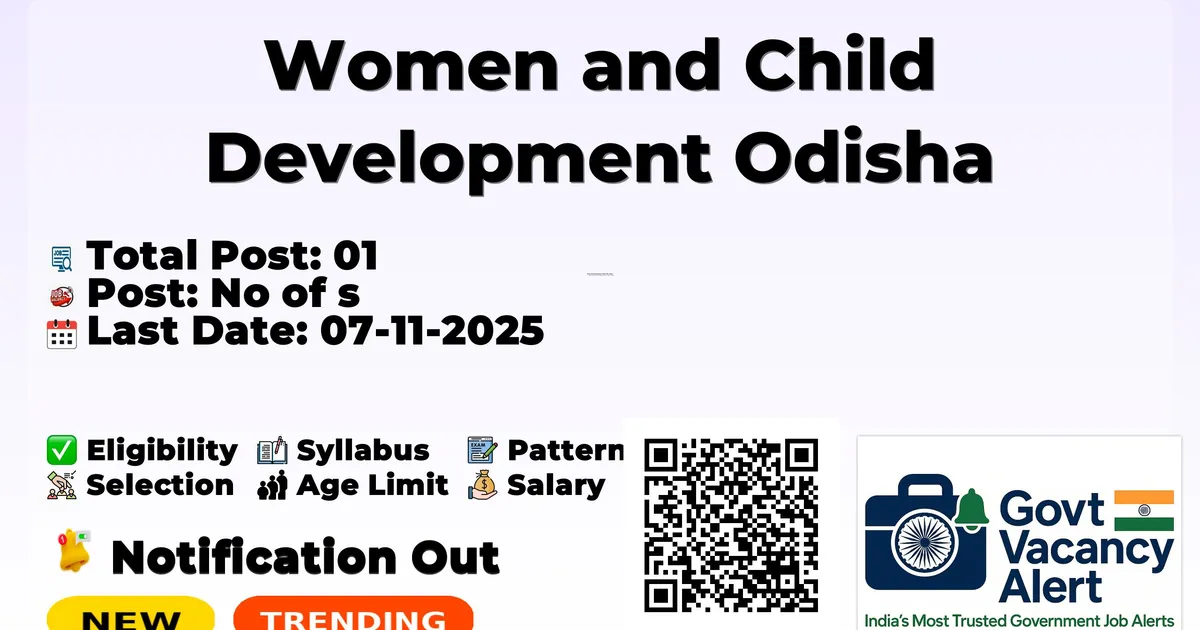 Women and Child Development Odisha (WCD Odisha) has released an official notification for the recruitment of 01 Anganwadi Worker Posts. Interested and eligible candidates can apply Online through the official WCD Odisha website. The last date to submit the application form is 07-11-2025. In this article, you’ll find the WCD Odisha Anganwadi Worker Posts recruitment details, including eligibility criteria, age limit, salary structure, selection process, application steps, and direct links to the official notification and Online application form.