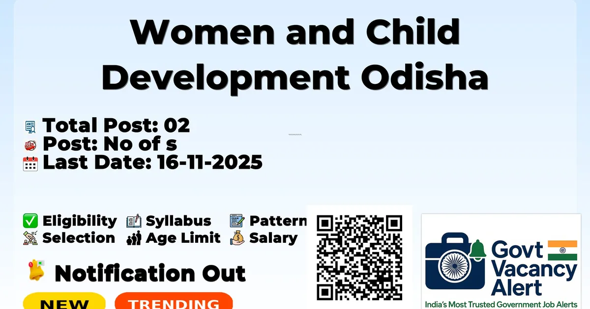 Company Name Women and Child Development Odisha (WCD Odisha) Post Name Anganwadi Helper No of Posts 02 Qualification 12TH Age Limit 18 to 35 years Start Date for Apply Online 02-11-2025 Last Date for Apply Online 16-11-2025 Official Website awc.odisha.gov.in