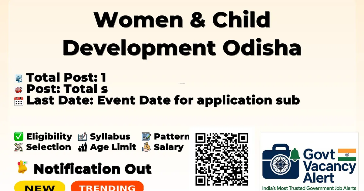 Women & Child Development Odisha (WCD Odisha) has officially released a notification for the recruitment of 1 Anganwadi Worker Posts. This recruitment drive offers a great opportunity for candidates looking for healthcare jobs. Interested and eligible candidates can apply online through the official website.