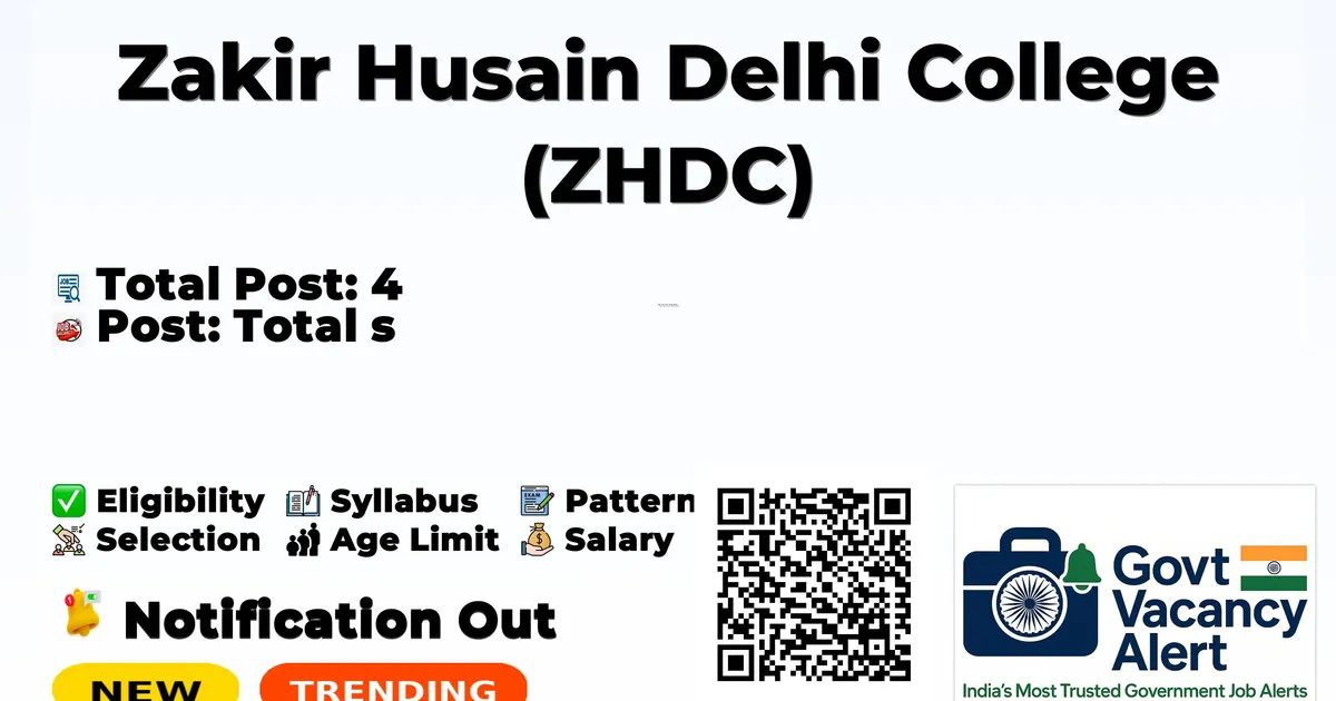 Zakir Husain Delhi College (ZHDC) has released an official notification for Walk-in Interview for 4 Guest Faculty Posts. Eligible candidates can attend the Walk-in Interview on at the ZHDC office with original documents and self-attested copies.
