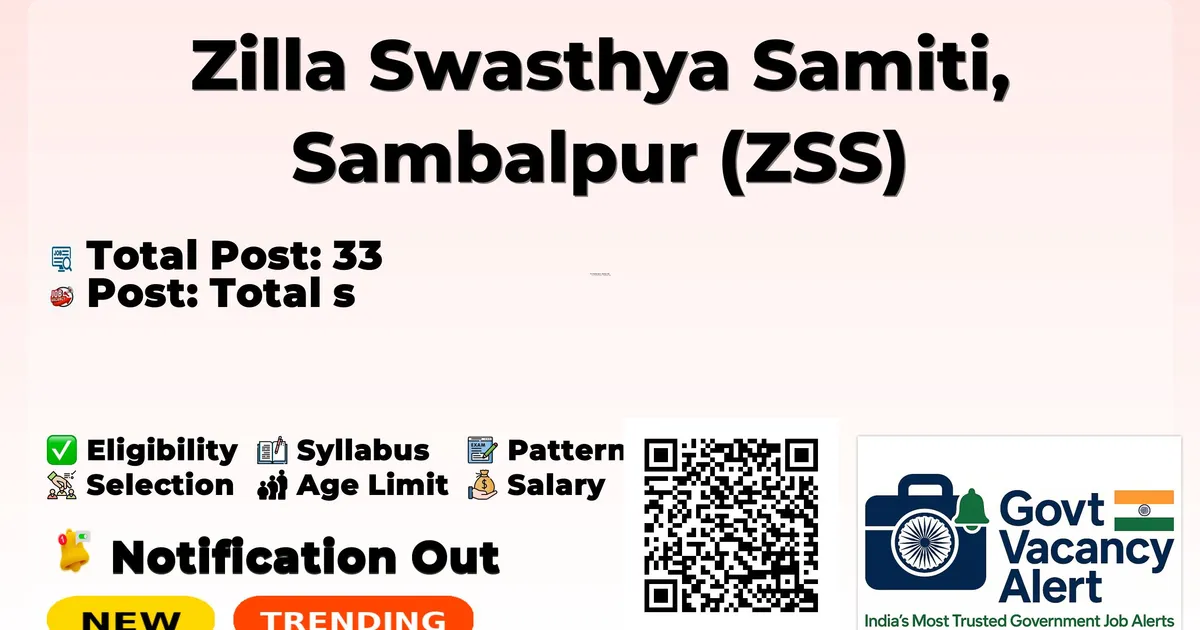Company Name Zilla Swasthya Samiti, Sambalpur (ZSS) Post Name MO SNCU, Pediatricians-DEIC, Other Posts (MO Ayush, Jr. Hospital Manager etc.) No of Posts 33 Advt No 395 Qualification MBBS / Ayush / Graduate / Diploma Notification Date 11-02-2026 Walk-in Date 24-02-2026 Apply Mode Walk-in Job Type Contract Official Website sambalpur.odisha.gov.in